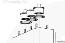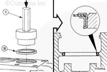 安裝密封件時,零件號必須朝上。使用木錘和節溫器密封沖頭(零件號 3824716)或等同物。安裝節溫器密封件時,使其與鑄造邊緣平齊,低于鑄造邊緣頂部不超過 0.51 mm [0.020 in]。