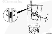 繼續加熱以檢查節溫器完全開啟時的溫度。