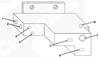 1左排燃油歧管(零件號 3094773),2自燃油濾清器流入的燃油(經過濾的增壓燃油),3流至燃油濾清器的燃油(未經過濾的增壓燃油),4流至右排燃油歧管的燃油 (經過濾的增壓燃油),5自右排燃油歧管流入的燃油(未經過濾的增壓燃油),6自左排輸油泵流入的燃油(未經過濾的增壓燃油),7流至 EHAB/噴油泵進口的燃油(經過濾的增壓燃油)。