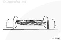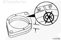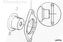 齒輪室切勿妨礙止推板平靠在缸體上。使用 Lubriplate ™ 105(零件號 3163086)在齒輪位置潤滑凸輪軸的外徑。安裝止推板,止推板上的槽朝向凸輪軸齒輪。