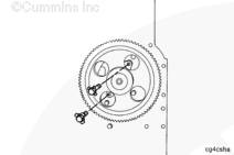 如果需要,旋轉曲軸以使凸輪軸齒輪上的孔與止推板上的螺栓孔相通安裝兩顆止推板安裝螺栓。擰緊螺栓。扭矩值: 45 n.m [33 ft-lb]
