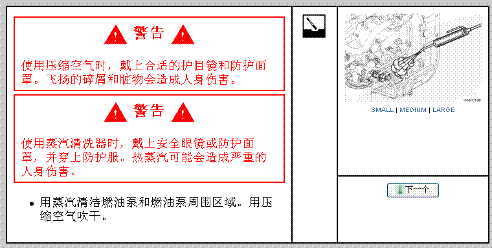 • 確保沒有任何污垢或碎屑進入燃油系統部件,以防污染物流到高壓燃油油軌和噴油器。