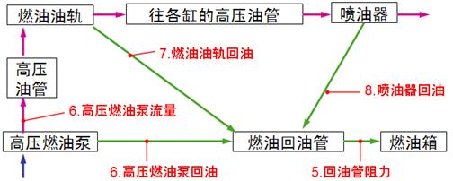 • 部分燃油經燃油溢流閥去潤滑高壓燃油泵