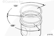 放置各個活塞環,使每個活塞環開口相互成 120 度。
