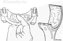 將上軸瓦裝入連桿中,軸瓦定位舌座入連桿上的槽中。