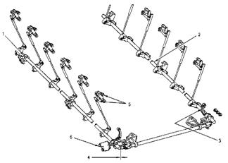 燃油停止供油操縱桿的平面接觸到同步銷后, 把8T-2684 齒條同步測量工具(5)安裝在單體泵和齒條尾端之間的單體泵齒條圓形部位上. 然后用螺絲起子調(diào)整控制桿(6)內(nèi)的調(diào)整螺絲. 注意同時細聽調(diào)整螺絲發(fā)出的“滴”聲至到8T-2684 齒條同步測量工具接適當(dāng)?shù)慕佑|到單體泵和齒條尾端扛之間.把螺絲起子從調(diào)整控制杠取開, 避免給齒條連桿機構(gòu)造成壓力