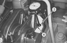 安裝145-5191千分表支架在氣門蓋底端的螺絲孔(2). 調(diào)整在氣門過橋( 4 )上端的接觸表面( 3 ).