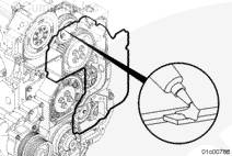 使用康明斯ISX15 CM2250發動機提升設備將齒輪室蓋安裝到下部三個雙頭螺柱上。
