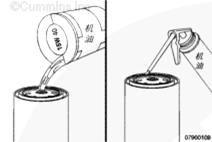 用清潔的 15W-40 機油加注濾清器。
