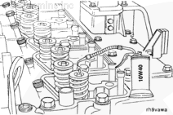 小心地將缸蓋直放于缸體上,并使它座入定位銷中。