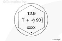 為了精確地使螺栓轉動到要求的角度,使螺栓與螺栓頭上標記的“小圓點”和“窗口”對正,或者使用扭矩角度計 - 3/4 英寸驅動頭(零件號 3823878)。
