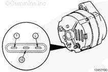 檢查導線有無故障。檢查所有的連接是否清潔并連接緊固,包括充電機和康明斯B3.3和QSB3.3發動機工作間壁之間的滑動接頭,以及蓄電池的接線。參考第 13 節中的步驟 013-009。