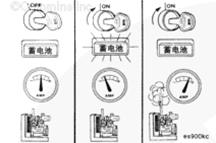 要想檢驗充電機充電系統工作正常或異常情況,在充電機旋轉時將跨接導線在蓄電池端子“B+”和“IG”端子之間進行瞬時接觸。如果起作用,將接通充電機。