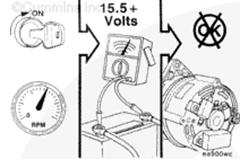 讓康明斯B3.3和QSB3.3發動機高怠速運轉,用數字萬用表(零件號 3164488)或等效工具測量輸出到蓄電池上的充電機電壓。參考 OEM 維修手冊中的充電機輸出電壓。