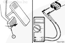 使萬用表的表筆與離合器踏板位置開關接頭的 2 個端子接觸。