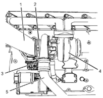 2松開軟管卡箍(3),然后將管組件(5)從Perkins1106A/C發動機渦輪增壓器(4)上斷開。