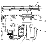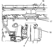 3清潔Perkins1106A/C發動機排氣歧管(16)的密封墊表面。如有必要,將螺柱(17)安裝到Perkins1106A/C發動機排氣歧管上。擰緊螺柱至扭矩18N·m(160lbin)。