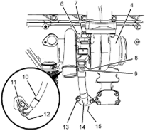 9將管組件(14)安裝到Perkins1106A/C發動機渦輪增壓器(4)上。安裝螺栓(9)并用手擰緊。