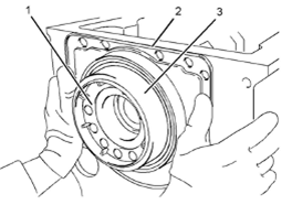 4.對齊塑料套管(3)與Perkins1106A/C發動機曲軸法蘭(1)。確保塑料套管在Perkins1106A/C發動機曲軸法蘭上嚙合。將新Perkins1106A/C發動機曲軸后油封(2)的四角推到Perkins1106A/C發動機曲軸法蘭上。在這個操作過程中,會把塑料套管壓出Perkins1106A/C發動機曲軸后油封。棄置塑料套管。