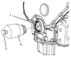 2.將螺栓(2)擰入工具(A)以拆卸Perkins1106A/C發(fā)動機(jī)曲軸前油封(1)。
