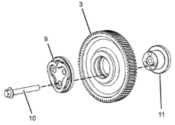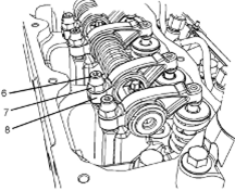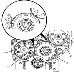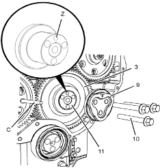 Perkins1106A/C發(fā)動(dòng)機(jī)惰齒輪-拆卸 拆卸步驟 Perkins1106A/C發(fā)動(dòng)機(jī)曲軸轉(zhuǎn)動(dòng)工具用于前皮帶輪。 該工具在電動(dòng)起動(dòng)馬達(dá)的孔上使用。 開始: a.拆卸Perkins1106A/C發(fā)動(dòng)機(jī)噴油泵齒輪。請(qǐng)參閱《Perkins1106A/C發(fā)動(dòng)機(jī)拆解和組裝》,“Perkins1106A/C發(fā)動(dòng)機(jī)燃油泵齒輪-拆卸”。 b.拆下Perkins1106A/C發(fā)動(dòng)機(jī)氣門機(jī)構(gòu)蓋。請(qǐng)參閱《Perkins1106A/C發(fā)動(dòng)機(jī)拆解和組裝》,“Perkins1106A/C發(fā)動(dòng)機(jī)氣門機(jī)構(gòu)蓋-拆卸和安裝”。 注:可以使用兩個(gè)工具(A)中的任意一個(gè)。請(qǐng)使用最適用的工具。 注:必須小心操作,確保在Perkins1106A/C發(fā)動(dòng)機(jī)燃油泵齒輪的拆卸過程 注意:保持所有零件清潔無雜質(zhì)。雜質(zhì)會(huì)造成快速磨損和縮短部件壽命。 1從Perkins1106A/C發(fā)動(dòng)機(jī)缸體上拆下螺塞(5)。從螺塞(5)拆下O形密封圈(4)。 2使用工具(A)轉(zhuǎn)動(dòng)Perkins1106A/C發(fā)動(dòng)機(jī)曲軸,使1號(hào)Perkins1106A/C發(fā)動(dòng)機(jī)活塞處于其壓縮沖程的上止點(diǎn)位置。請(qǐng)參閱《系統(tǒng)操作、測(cè)試和調(diào)整》,“查找1號(hào)Perkins1106A/C發(fā)動(dòng)機(jī)活塞上止點(diǎn)位置”。 3將工具(B)安裝到Perkins1106A/C發(fā)動(dòng)機(jī)缸體的孔(Y)中。使用工具(B),將Perkins1106A/C發(fā)動(dòng)機(jī)曲軸鎖定到位。 注:安裝工具(B)時(shí)不要使用過大的力量。在修理過程中不要使用工具(B)固定Perkins1106A/C發(fā)動(dòng)機(jī)曲軸。 4.確保已將工具(C)安裝在Perkins1106A/C發(fā)動(dòng)機(jī)凸輪軸齒輪的孔(X)中。使用工具(C)將Perkins1106A/C發(fā)動(dòng)機(jī)凸輪軸鎖定到位。 5.確保已標(biāo)記齒輪(1)、(2)和(3)以便顯示對(duì)準(zhǔn)位置。 6松開所有搖臂(8)上的螺母(7)。擰松所有搖臂(8)上的調(diào)節(jié)器(6),直到所有氣門完全閉合。 注:如果不能保證完全擰松所有調(diào)節(jié)器,可能會(huì)導(dǎo)致氣門與Perkins1106A/C發(fā)動(dòng)機(jī)活塞接觸。 7.標(biāo)記板(9)以顯示朝向。 注:識(shí)別標(biāo)記能確保將板安裝在原來的對(duì)準(zhǔn)位置。 8.拆下螺栓(10)。 9.拆下板(9)。 10.將Perkins1106A/C發(fā)動(dòng)機(jī)惰齒輪組件(3)和輪轂(11)從前Perkins1106A/C發(fā)動(dòng)機(jī)機(jī)殼體的凹槽上卸下。 注:在拆卸過程中必須傾斜Perkins1106A/C發(fā)動(dòng)機(jī)惰齒輪。 11.將輪轂(11)從Perkins1106A/C發(fā)動(dòng)機(jī)惰齒輪(3)上卸下。 Perkins1106A/C發(fā)動(dòng)機(jī)惰齒輪-安裝 安裝步驟 Perkins1106A/C發(fā)動(dòng)機(jī)曲軸轉(zhuǎn)動(dòng)工具用于前皮帶輪。 該工具在電動(dòng)起動(dòng)馬達(dá)的孔上使用。 1如有必要,使用工具(A)確保1號(hào)Perkins1106A/C發(fā)動(dòng)機(jī)活塞處于壓縮行程上止點(diǎn)。有關(guān)正確的步驟,請(qǐng)參閱《系統(tǒng)操作、測(cè)試和調(diào)整》,“查找1號(hào)Perkins1106A/C發(fā)動(dòng)機(jī)活塞上止點(diǎn)位置”。 2確保已將工具(B)安裝在Perkins1106A/C發(fā)動(dòng)機(jī)缸體的孔(Y)中。使用工具(B),將Perkins1106A/C發(fā)動(dòng)機(jī)曲軸鎖定到位。 3.確保已將工具(C)安裝在Perkins1106A/C發(fā)動(dòng)機(jī)凸輪軸齒輪(1)的孔(X)中。 4清潔Perkins1106A/C發(fā)動(dòng)機(jī)惰齒輪(3),檢查Perkins1106A/C發(fā)動(dòng)機(jī)惰齒輪有無磨損或損壞。有關(guān)更多資料,請(qǐng)參閱《技術(shù)規(guī)格》,“齒輪總成(前)”。如有必要,更換Perkins1106A/C發(fā)動(dòng)機(jī)惰齒輪。 5清潔輪轂(11),檢查輪轂有無磨損或損壞。有關(guān)更多資料,請(qǐng)參閱《技術(shù)規(guī)格》,“齒輪總成(前)”。如有必要,更換輪轂。 6使用清潔的發(fā)動(dòng)機(jī)Perkins1106A/C發(fā)動(dòng)機(jī)機(jī)油潤(rùn)滑輪轂(11)。將輪轂(11)滑入Perkins1106A/C發(fā)動(dòng)機(jī)惰齒輪(3)。確保正時(shí)標(biāo)記朝向Perkins1106A/C發(fā)動(dòng)機(jī)惰齒輪前部。 7對(duì)準(zhǔn)Perkins1106A/C發(fā)動(dòng)機(jī)惰齒輪(3)與Perkins1106A/C發(fā)動(dòng)機(jī)凸輪軸齒輪上的的正時(shí)標(biāo)記。請(qǐng)參閱插圖135。將Perkins1106A/C發(fā)動(dòng)機(jī)惰齒輪組件(3)和輪轂(11)安裝到正時(shí)箱的凹槽中。確保油孔(Z)靠近輪轂頂部。 注:在安裝過程中必須傾斜Perkins1106A/C發(fā)動(dòng)機(jī)惰齒輪。確保對(duì)準(zhǔn)輪轂中的孔與Perkins1106A/C發(fā)動(dòng)機(jī)缸體中的孔。 8.清潔板(9),檢查板有無磨損或損壞。如有必要,更換板。 9.使用清潔的發(fā)動(dòng)機(jī)機(jī)油潤(rùn)滑板(9)。對(duì)準(zhǔn)板(9)和輪轂(11)內(nèi)的孔。將板安裝在原來的朝向。 10.安裝螺栓(10)。 11.拆下工具(B)和工具(C)。 注:拆下工具(B)和工具(C)之前,確保正時(shí)標(biāo)記已對(duì)齊。 12.擰緊螺栓(10)至扭矩為44N·m(32lbft)。 13.使用工具(D)測(cè)量Perkins1106A/C發(fā)動(dòng)機(jī)凸輪軸齒輪的端隙。有關(guān)更多資料,請(qǐng)參閱《技術(shù)規(guī)格》,“齒輪總成(前)”。 14.使用工具(D)測(cè)量Perkins1106A/C發(fā)動(dòng)機(jī)惰齒輪與Perkins1106A/C發(fā)動(dòng)機(jī)凸輪軸齒輪之間的齒隙。有關(guān)更多資料,請(qǐng)參閱《技術(shù)規(guī)格》,“齒輪總成(前)”。 15.使用工具(D)測(cè)量Perkins1106A/C發(fā)動(dòng)機(jī)惰齒輪與Perkins1106A/C發(fā)動(dòn