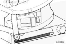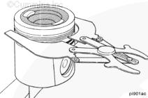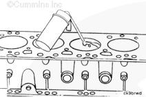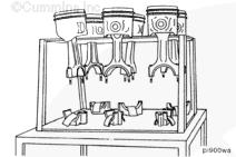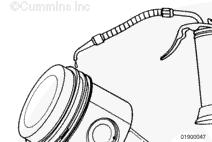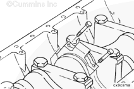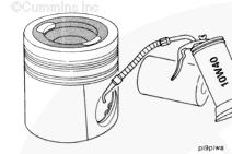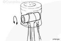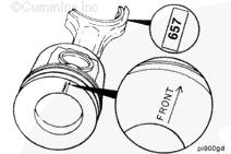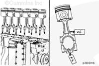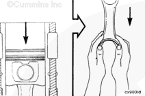 康明斯ISB5.9 G CM2180發(fā)動(dòng)機(jī)活塞和連桿總成 概述 TOC 與康明斯ISB5.9 G CM2180發(fā)動(dòng)機(jī)功率有關(guān)的問題有很多,包括機(jī)油消耗過大、冒煙、竄氣和性能不良,它們可能由活塞環(huán)與缸壁之間的密封不良引起。A 竄氣測量值有助于發(fā)現(xiàn)問題。參考第 14 節(jié)中的步驟 014-002。 連接康明斯ISB5.9 G CM2180發(fā)動(dòng)機(jī)活塞和連桿的活塞銷采用自由浮動(dòng)的中空活塞銷。已經(jīng)完成從活塞冷卻噴嘴通過滯留噴霧的方法潤滑銷和軸頸。 康明斯ISB5.9 G CM2180發(fā)動(dòng)機(jī)連桿的活塞銷端帶有切削角度,以增加軸承受力面積。連桿端頭裝有青銅襯套。 準(zhǔn)備步驟 警告 為了減小人身傷害的可能性,應(yīng)避免皮膚直接接觸熱機(jī)油。 警告 冷卻液有毒。避免兒童與寵物接觸冷卻液。如果不再繼續(xù)使用,應(yīng)按照當(dāng)?shù)丨h(huán)保法規(guī)進(jìn)行處理。 排放機(jī)油。參考第 7 節(jié)中的步驟 007-025。 拆下油底殼和密封墊。參考第 7 節(jié)中的步驟 007-025。 排放冷卻液。參考第 8 節(jié)中的步驟 008-018。 拆下缸蓋。參考第 2 節(jié)中的步驟 002-004。 拆卸 TOC 根據(jù)康明斯ISB5.9 G CM2180發(fā)動(dòng)機(jī)氣缸位置標(biāo)記每個(gè)連桿蓋。 使用康明斯ISB5.9 G CM2180 發(fā)動(dòng)機(jī)盤車工具(零件號 3824591)旋轉(zhuǎn)曲軸,直到活塞位于積碳下方(可在活塞環(huán)行程區(qū)域的上方找到)。 注意 不要用砂布或砂紙去除缸孔上的積碳。來自這些材料的氧化鋁或硅微粒會(huì)嚴(yán)重?fù)p壞康明斯ISB5.9 G CM2180 發(fā)動(dòng)機(jī)。 用刮刀或鈍邊工具松動(dòng)積碳。不要讓刮刀損壞缸套。 注: 在清潔缸孔時(shí),執(zhí)行圓柱運(yùn)動(dòng),不是垂直運(yùn)動(dòng),確保不造成泄漏通道。 用 Scotch-Brite 清潔墊或等同物清除剩余的積碳。 拆下康明斯ISB5.9 G CM2180發(fā)動(dòng)機(jī)螺釘、連桿蓋和連桿軸承。參考第 1 節(jié)中的步驟 001-005。 將康明斯ISB5.9 G CM2180發(fā)動(dòng)機(jī)連桿和活塞總成推出缸孔。注意不得損壞連桿或軸承。 用雙手取出活塞和連桿總成。 注: 活塞和連桿總成必須安裝在與拆卸時(shí)相同的氣缸上。如果要繼續(xù)使用這些零件,這樣會(huì)使磨損的配合面正確配合。 使用標(biāo)簽標(biāo)記拆下的活塞和連桿總成所屬的缸號。 將康明斯ISB5.9 G CM2180發(fā)動(dòng)機(jī)連桿和活塞總成放入容器中以免損壞。 解體 TOC 使用康明斯ISB5.9 G CM2180發(fā)動(dòng)機(jī)活塞環(huán)擴(kuò)張器(零件號 3823137)拆卸活塞環(huán)。參考第 1 節(jié)中的步驟 001-047。 拆卸康明斯ISB5.9 G CM2180發(fā)動(dòng)機(jī)卡環(huán)。 拆下康明斯ISB5.9 G CM2180發(fā)動(dòng)機(jī)活塞銷。 注: 不需要加熱活塞。 組裝 TOC 確保活塞上的前標(biāo)志以及連桿和連桿蓋上的數(shù)字的方向如圖所示。 將康明斯ISB5.9 G CM2180發(fā)動(dòng)機(jī)卡環(huán)安裝到活塞前側(cè)的活塞銷槽中。 用清潔的燃?xì)饪得魉笽SB5.9 G CM2180 發(fā)動(dòng)機(jī)機(jī)油潤滑活塞銷及銷孔。 安裝康明斯ISB5.9 G CM2180發(fā)動(dòng)機(jī)銷。 注: 安裝活塞銷時(shí)無需加熱活塞,但活塞必須在室溫或室溫以上。 安裝康明斯ISB5.9 G CM2180發(fā)動(dòng)機(jī)第二個(gè)活塞銷卡環(huán)。 安裝 TOC 將康明斯ISB5.9 G CM2180發(fā)動(dòng)機(jī)軸瓦裝入連桿和連桿蓋中。確保軸瓦上的定位舌位于連桿蓋和連桿的槽中。 用一薄層清潔的康明斯ISB5.9 G CM2180 發(fā)動(dòng)機(jī)機(jī)油潤滑連桿軸承。 安裝康明斯ISB5.9 G CM2180發(fā)動(dòng)機(jī)活塞環(huán)。參考第 1 節(jié)中的步驟 001-047。 使用清潔的燃?xì)饪得魉笽SB5.9 G CM2180 發(fā)動(dòng)機(jī)機(jī)油潤滑活塞環(huán)和活塞裙。 放置各個(gè)康明斯ISB5.9 G CM2180發(fā)動(dòng)機(jī)活塞環(huán),使每個(gè)活塞環(huán)開口相互成 120 度。 注意 如果使用帶式活塞環(huán)壓縮器,確保帶的內(nèi)側(cè)沒有掛在活塞環(huán)的缺口并折斷活塞環(huán)。 將康明斯ISB5.9 G CM2180發(fā)動(dòng)機(jī)活塞環(huán)壓縮器(零件號 3823290)安裝到活塞上。 康明斯ISB5.9 G CM2180發(fā)動(dòng)機(jī)壓縮活塞環(huán)。 使用清潔的燃?xì)饪得魉笽SB5.9 G CM2180 發(fā)動(dòng)機(jī)機(jī)油潤滑缸孔。 使用康明斯ISB5.9 G CM2180 發(fā)動(dòng)機(jī)盤車工具(零件號 3824591),將要安裝的活塞連桿軸頸置于下止點(diǎn)。 注意在插入連桿時(shí)不要損壞缸壁。 將康明斯ISB5.9 G CM2180發(fā)動(dòng)機(jī)活塞和連桿總成裝入缸孔,活塞上的前標(biāo)記朝向缸體前部。 小心地將活塞推入缸孔,同時(shí)將連桿引導(dǎo)至曲軸軸頸處。 用清潔的康明斯ISB5.9 G CM2180 發(fā)動(dòng)機(jī)機(jī)油潤滑螺紋和連桿螺釘頭的下部。 注: 印在連桿和連桿蓋間分型線上的編號必須匹配,并安裝在康明斯ISB5.9 G CM2180 發(fā)動(dòng)機(jī)機(jī)油冷卻器側(cè)。 將康明斯ISB5.9 G CM2180發(fā)動(dòng)機(jī)連桿蓋和螺釘安裝到連桿上。 交替擰緊 2 顆螺釘。 Torque Value: 30 n.m [22 ft-lb] 60 n.m [44 ft-lb] 順時(shí)針轉(zhuǎn)動(dòng) 60 度。 注: 不要測量連桿蓋與曲軸間的間隙。 用塞尺測量康明斯ISB5.9 G CM2180發(fā)動(dòng)機(jī)連桿與曲軸間的側(cè)隙。 曲軸必須能夠轉(zhuǎn)動(dòng)自如。如果連桿未正確定位(定位舌正對凸輪軸),就會(huì)