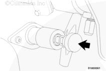 制作一個導線指示箭頭并安裝在康明斯ISB5.9 G CM2180 發動機前部。用一段導線放在齒輪室蓋其中的一個螺釘下面并擰緊就可以作到這一點。導線必須從齒輪室蓋延伸到曲軸減振器上某個容易被看到的地方。