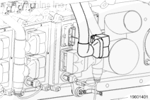 拆下康明斯起動馬達電纜、發動機接地導線、從駕駛室或底盤接到發動機的軟管、管道、電氣導線、接線線束和液壓管。