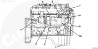1. 機油排放 2. 渦輪增壓器冷卻液回流 3. 渦輪增壓器機油回流 4. 排氣出口接頭 5. 渦輪增壓器機油供應 6. 渦輪增壓器冷卻液供應 7. 節(jié)溫器殼體 8. 機油冷卻器 9. 冷卻液進口 10. 機油濾清器。
