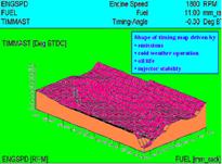 發(fā)動機的ECM內有多個三維圖譜. 如圖所示,當各個輸入信號的參數值確定后,在這種工況下的發(fā)動機的正時也就確定了.