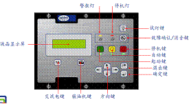 (1)液晶顯示屏—液晶顯示屏可顯示所有的從傳感器讀取至事件日志的發電機組信息,詳細請參照上圖所示。